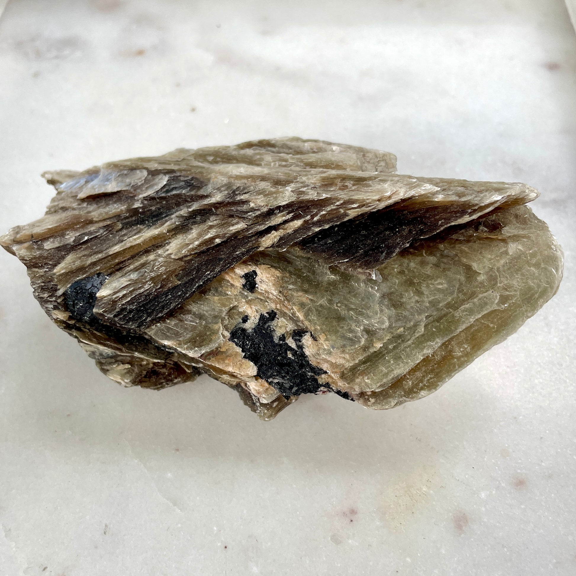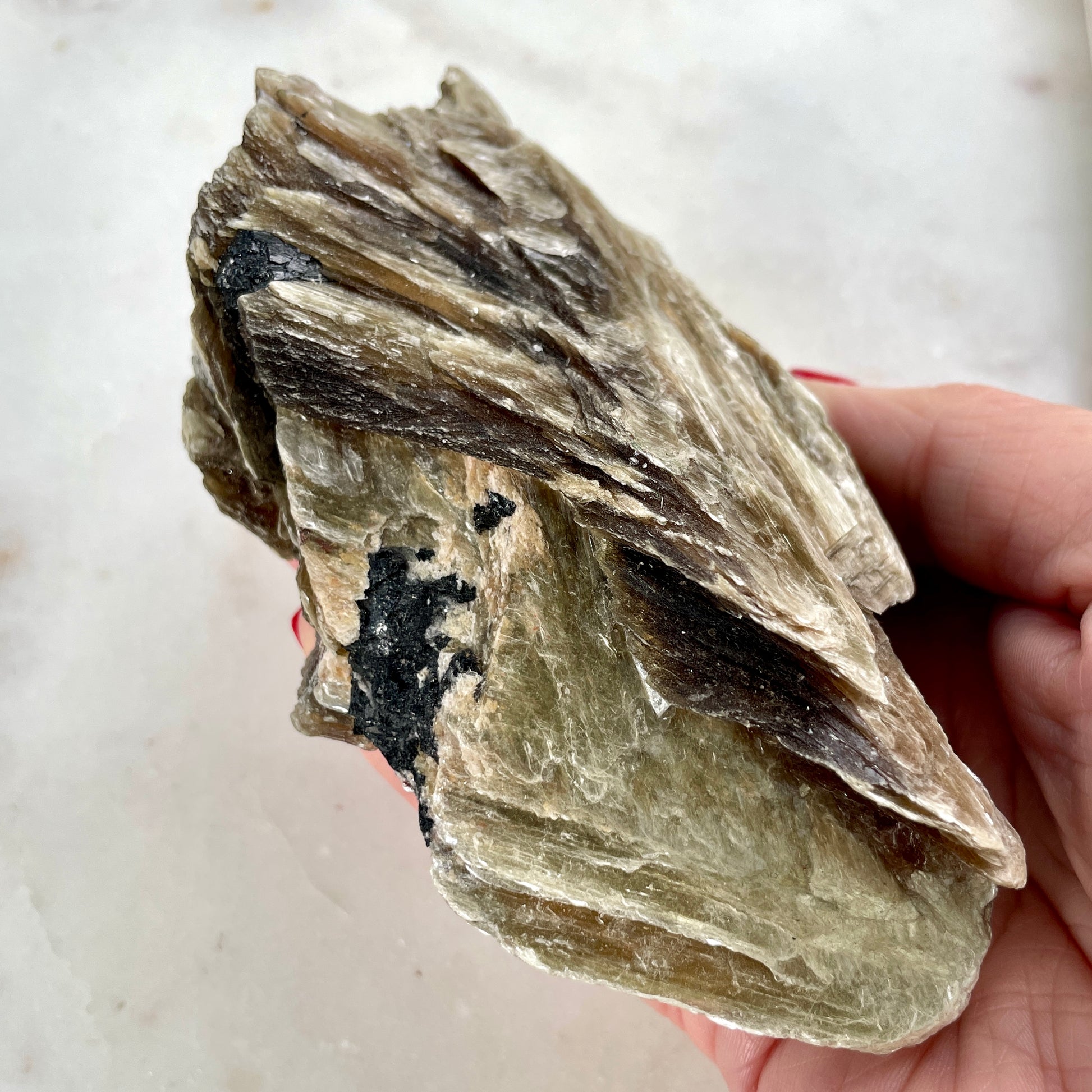 Often found with inclusions of Black tourmaline and Quartz, it is considered a stone of protection.