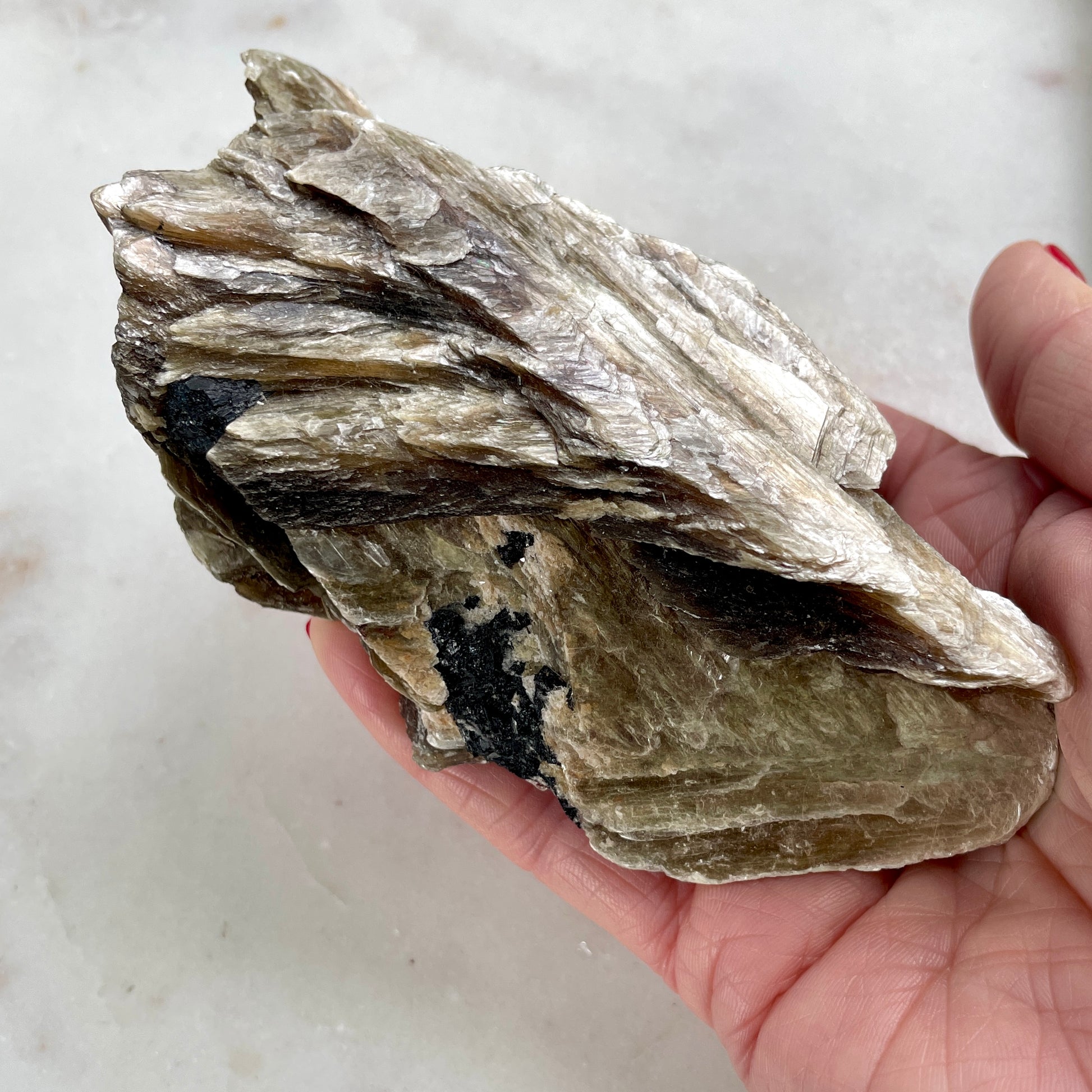 Golden Mica, with its golden lustre and reflective layers is a stunning mineral that is known for reflection, self discovery and clarity.