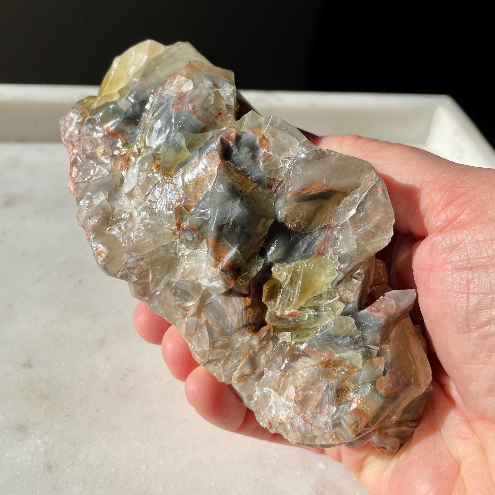 Rainbow calcite is a powerful spiritual cleanser that works on both the physical and emotional body. It brings tranquility and calm in times when you are emotionally overloaded or confused, helping clear the confusion.